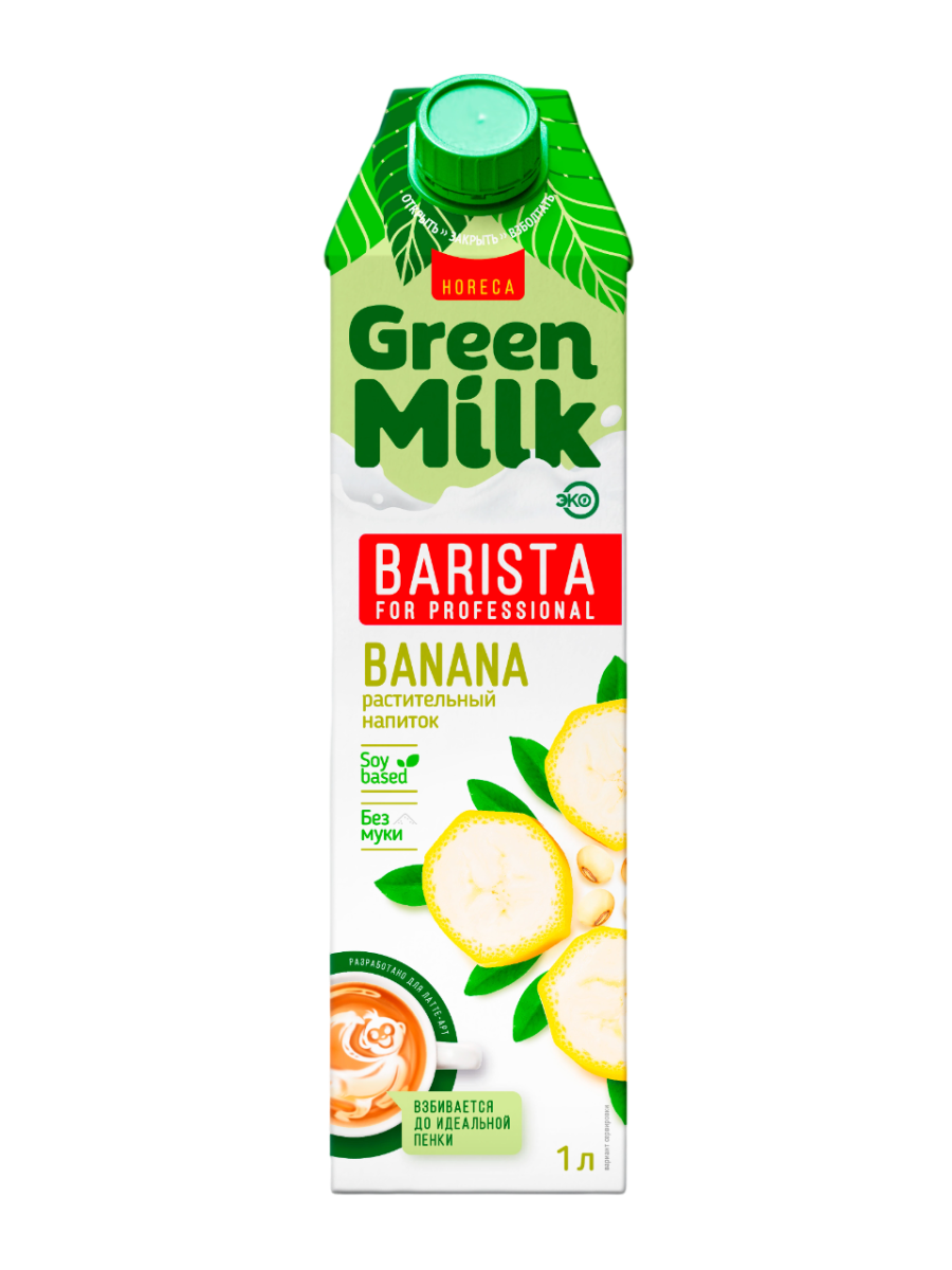 —Напиток безалкогольный соевый со вкусом БАНАНА "Green Milk Barista", Тетра Пак 1 л, Россия\12